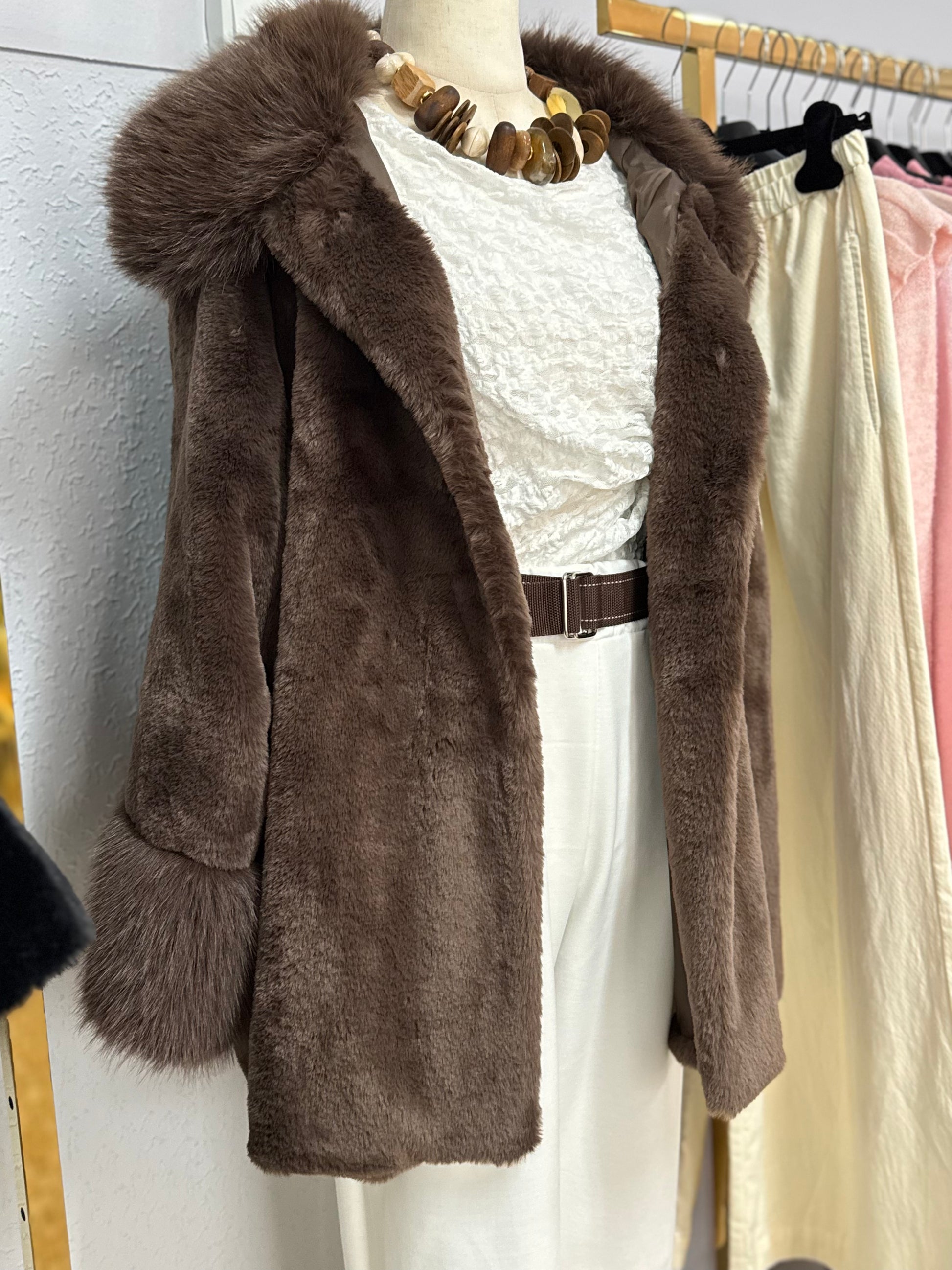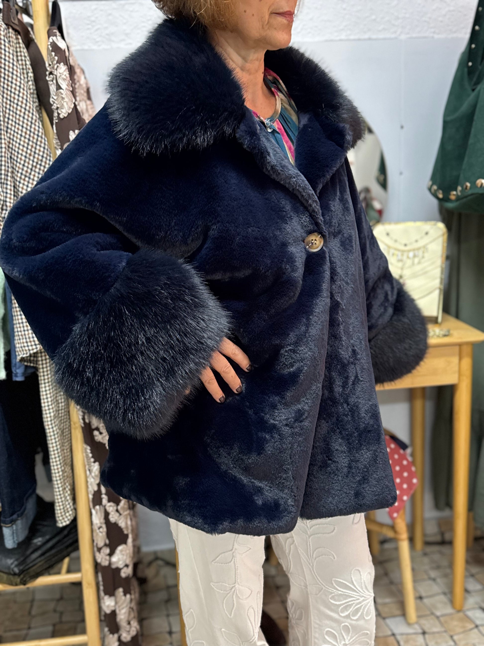 - Material: Forrado por dentro e por fora com pelo macio